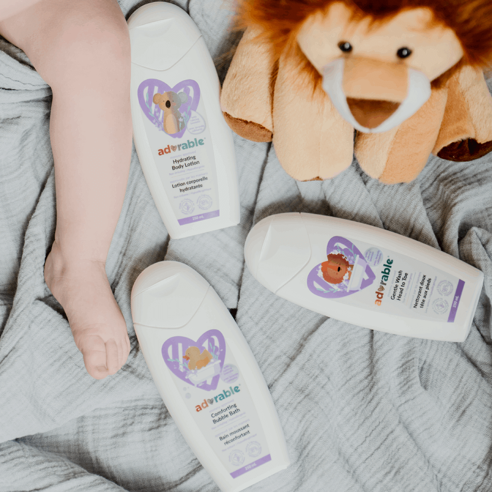 Dive into precious moments with our Comforting Bubble Bath, Gentle Wash Head to Toe, and Hydrating Body Lotion trio. From morning baths to bedtime cuddles, Adorable is there for you, every step of the way.