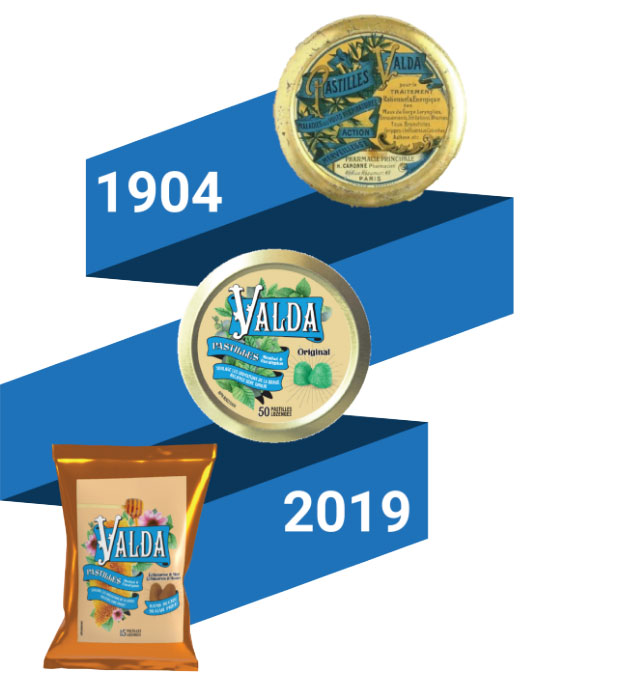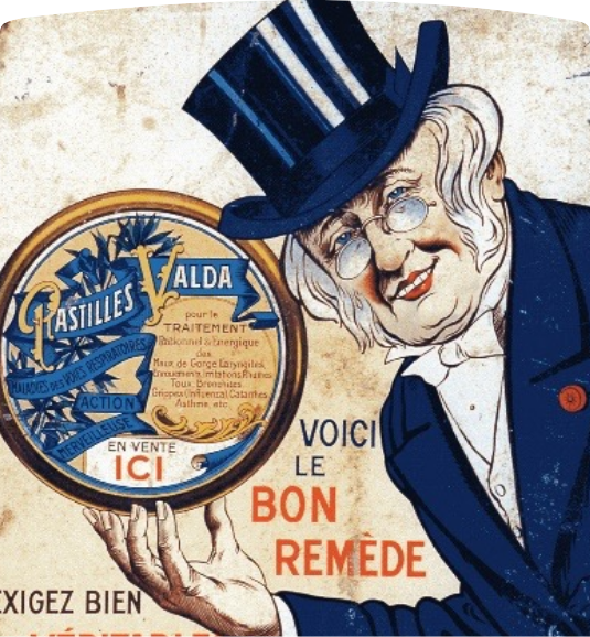 Valda was created by French pharmacist Henri-Hedmond Canonnes, in 1904 to relieve cough and sore throat. Canonnes mission, as a pharmacist and an ambitious entrepreneur, was to sell quality. That’s why Canonnes set up a store on one of the busiest streets of his time at number 49, on the corner of Boulevard Sébastopol in Paris. In addition to a prime location, Canonnes developed the character of Doctor Valda and the iconic round metal box. The brand quickly gained popularity around the world.